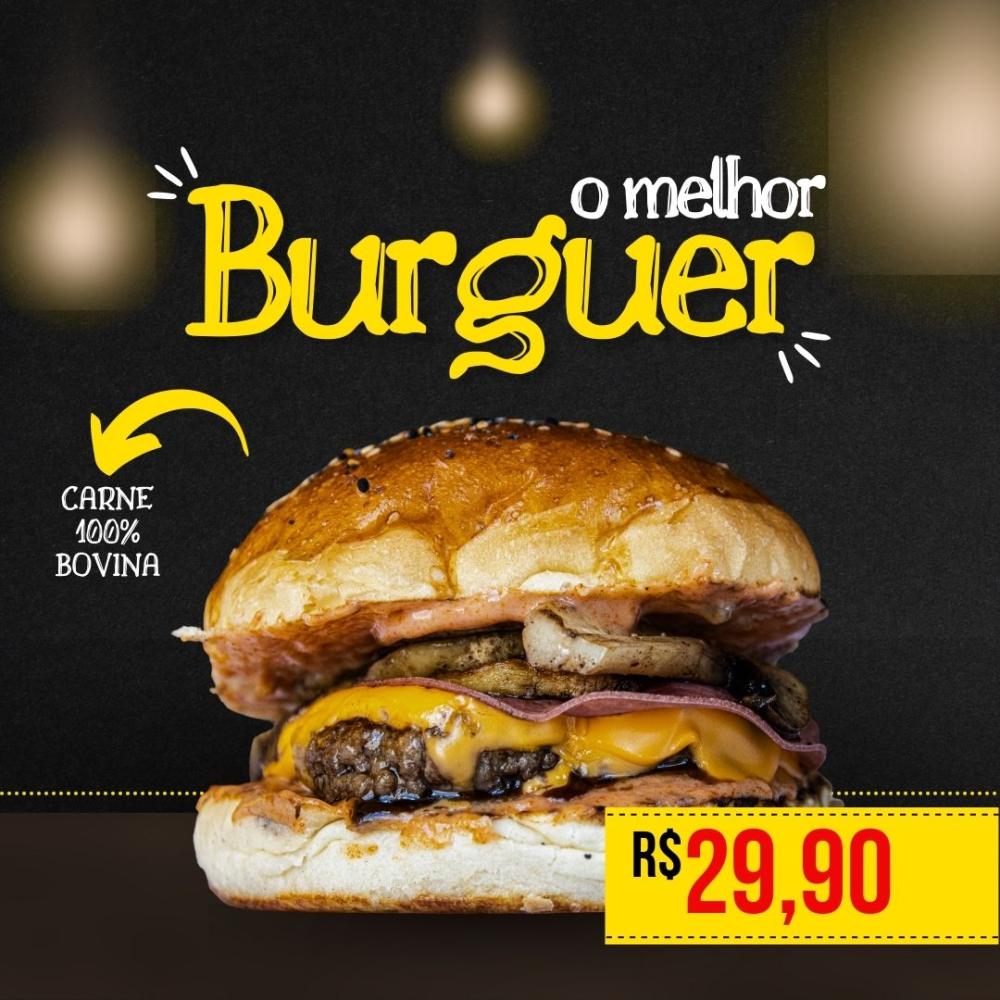 Hamburguer Cheddar, queijo cheddar,hamburger grelhado, bacon, cebola